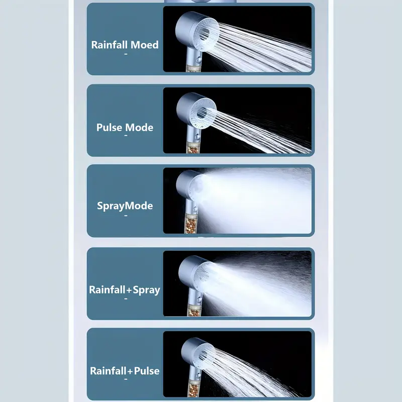 رأس دش محمول بـ 5 أوضاع مع فلتر خرز معدنية لتنقية المياه