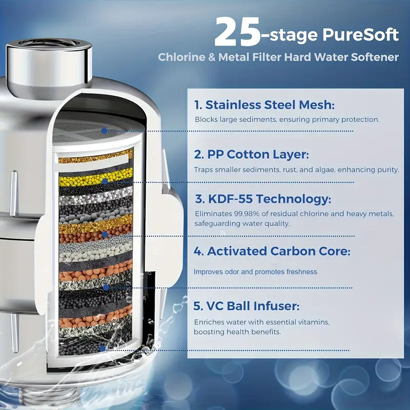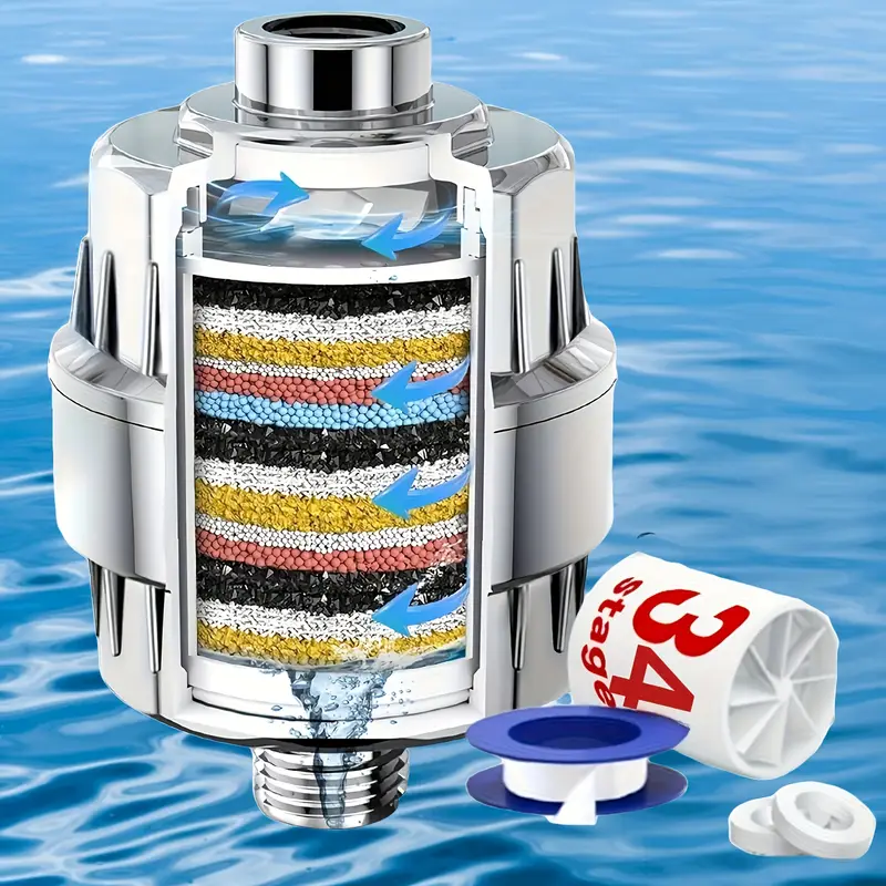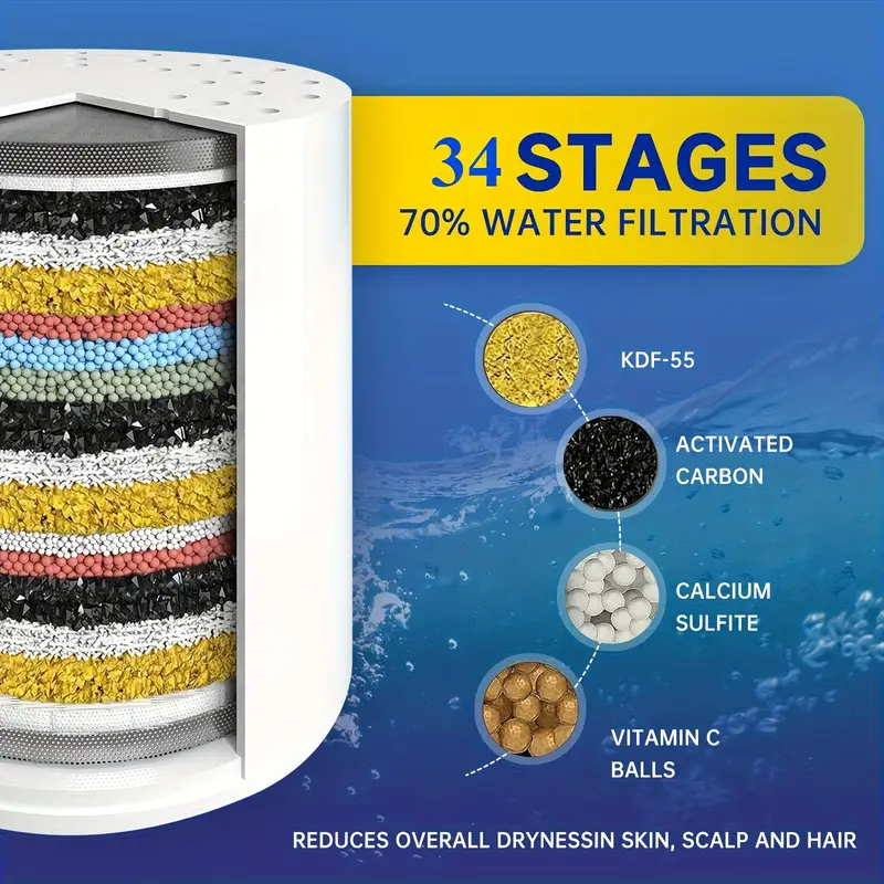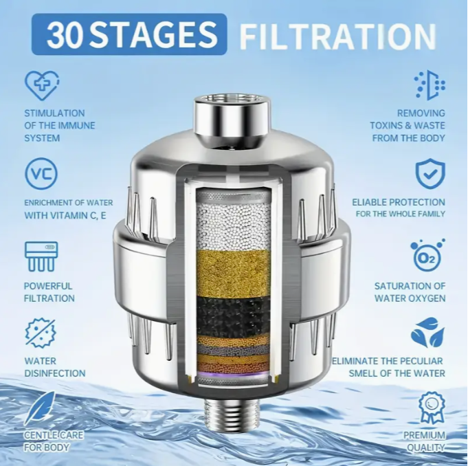 • نظام تصفية متعدد بـ 20/25/30/34 مرحلة يزيل الكلور، الفلوريد، والمعادن الثقيلة من الماء بفعالية عالية ️