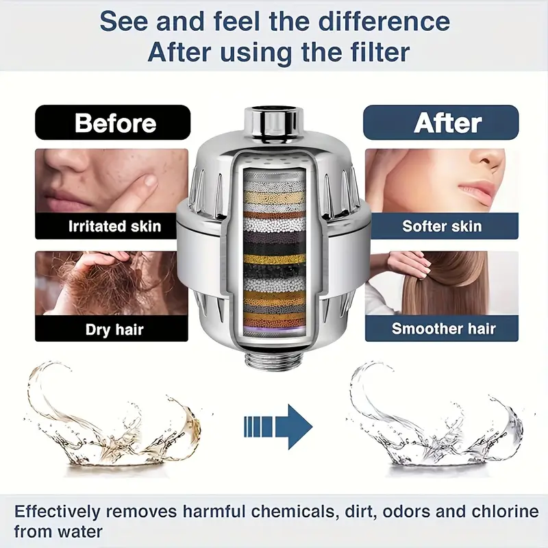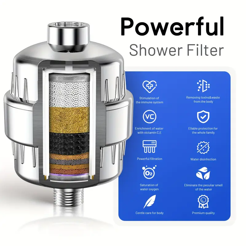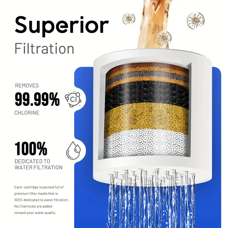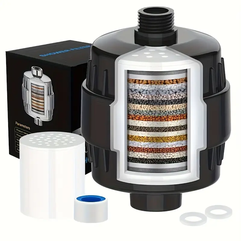 فلتر دش متعدد الطبقات لإزالة الكلور والشوائب ولتنقية متقدمة للمياه وتحسين شعرك وبشرتك✨ – مزود بفيتامين C