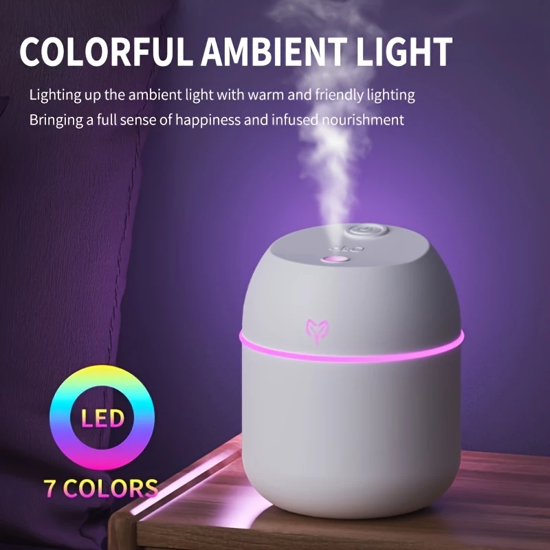 مرطب هواء USB متعدد الألوان بإضاءة LED – مثالي لغرفة، النوم والسيارات، والمنزل، مع 20 قطعة فلتر استبدال