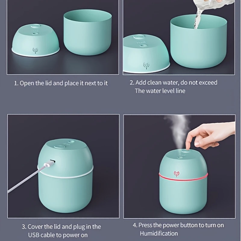 • ترطيب فعال للهواء بمصدر USB—سهلة الاستخدام بالمكتب او السيارة